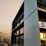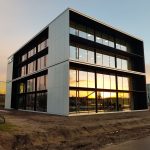 Nieuwbouw TMC te Eindhoven. Hier hebben wij het volledige pand aan de buitenkant voorzien van aluminium composiet deze zijn verlijmt op de achter-constructie. Het is een heel mooi pand geworden.